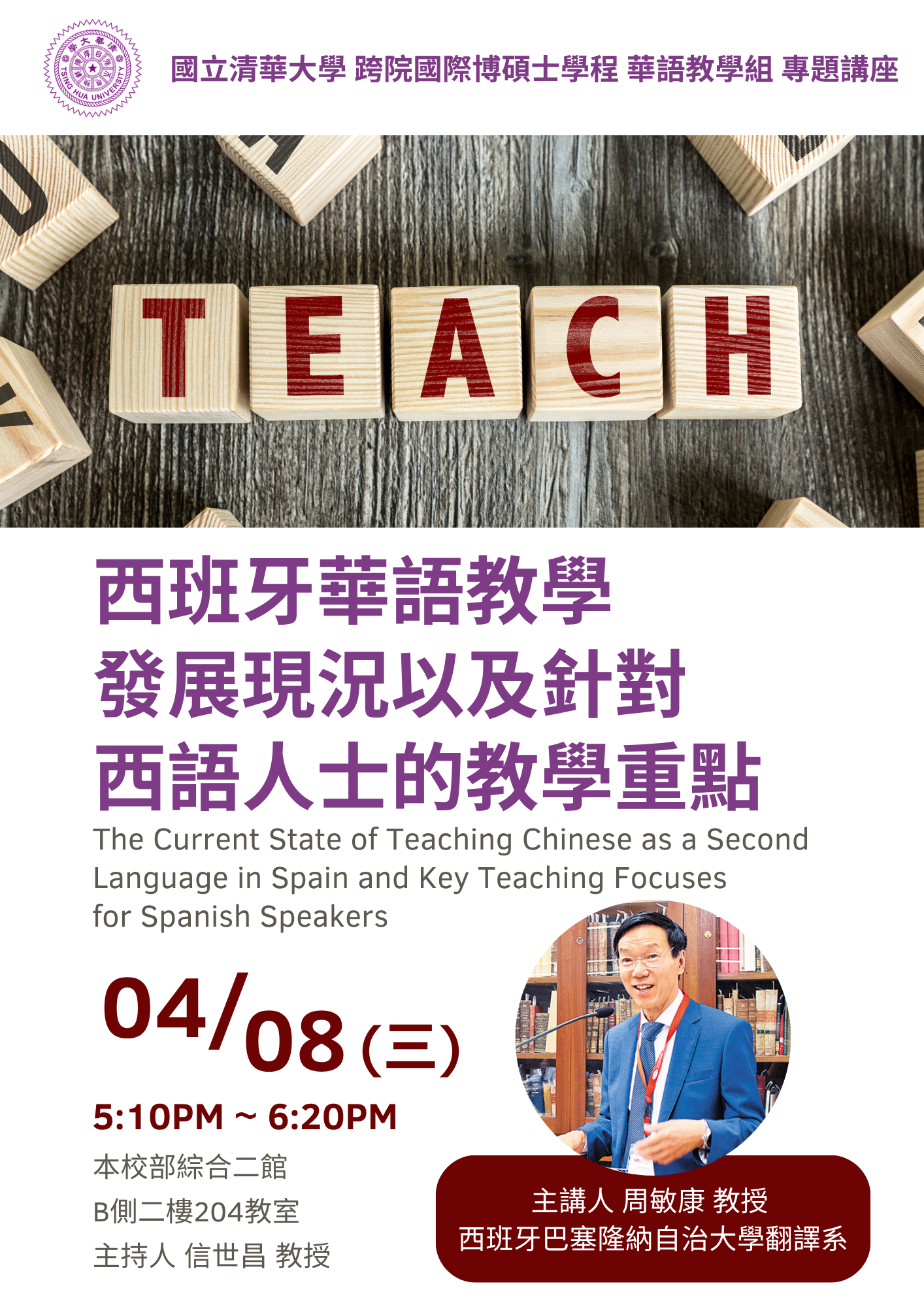 講題:西班牙華語教學發展現況以及針對西語人士的教學重點